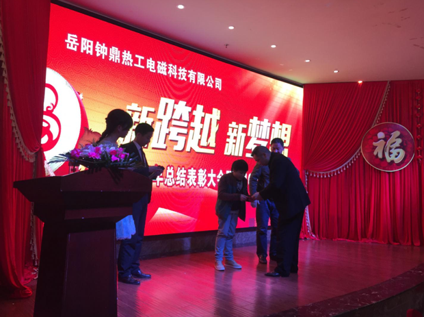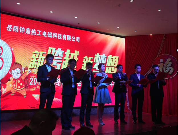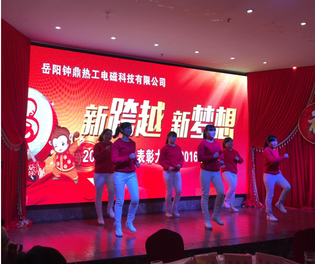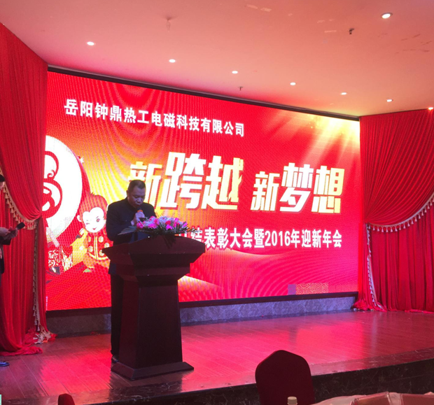 2016年2月3日岳陽鐘鼎熱工電磁科技有限公司2015年總結表彰大會暨2016年迎新年會在花板橋新大新酒店隆重舉行。鐘鼎熱工青年才俊們的開場詩朗誦《鐘靈毓秀、鼎盛未來》拉開年會的序幕,該詩篇講述了鐘鼎熱工創(chuàng)始人從創(chuàng)業(yè)到發(fā)展、到跨越升級的全過程,是一部非常勵志的史詩。