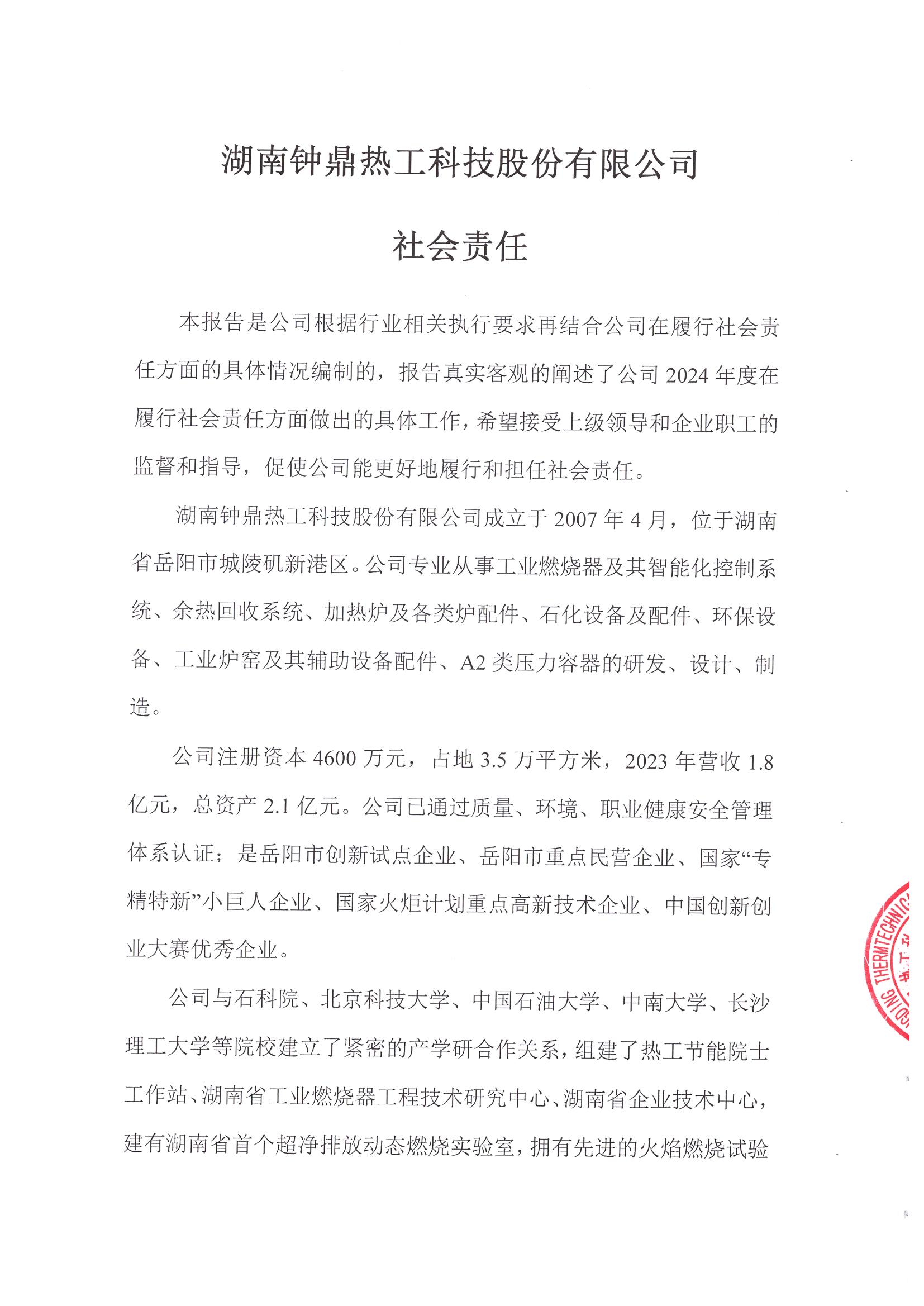 湖南鐘鼎熱工科技股份有限公司社會責(zé)任報(bào)告